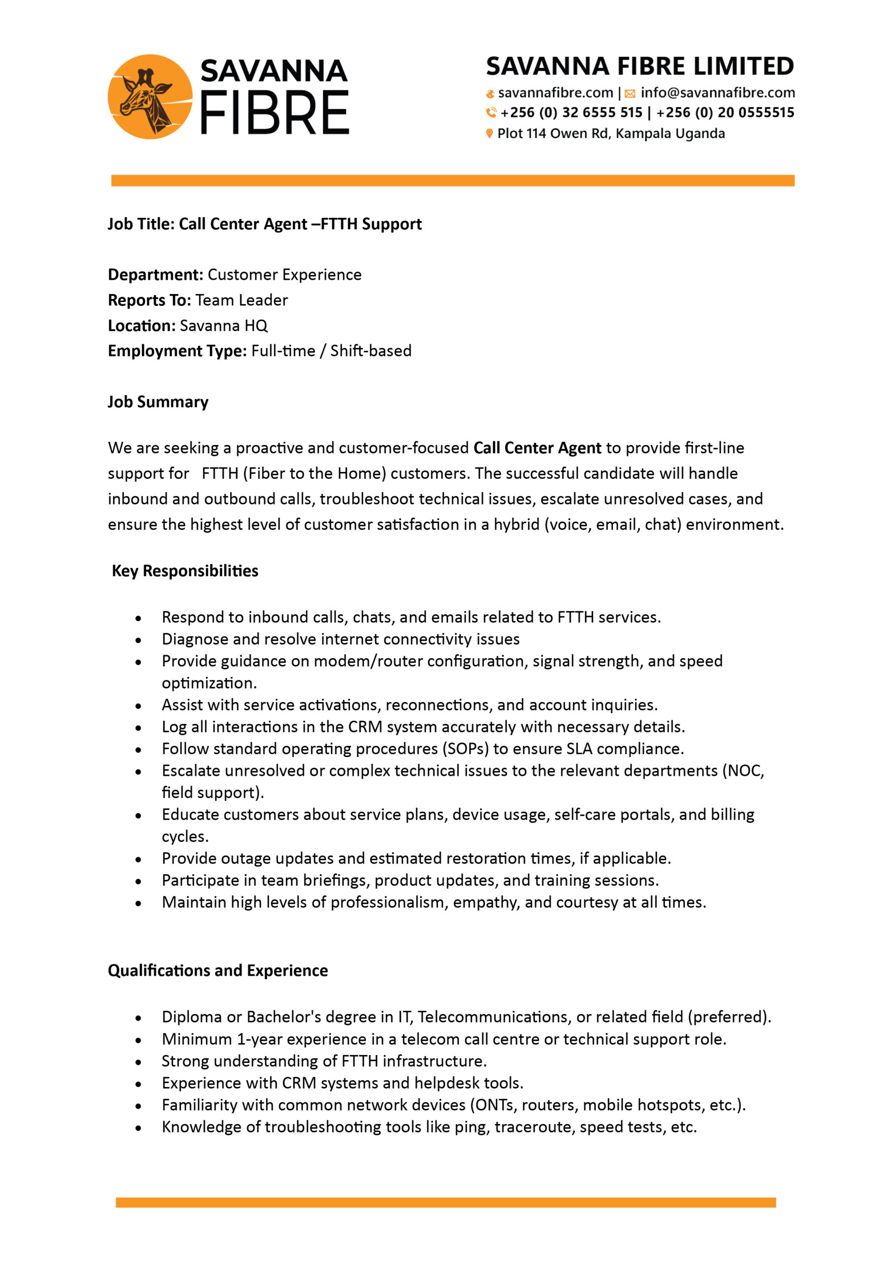 Job Category: Call Center Agent FTTH Support SUPPORT AGENT